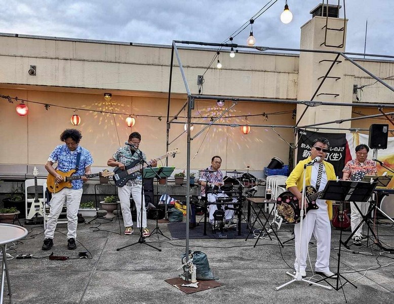 先月、松本のビヤガーデン「スターライト」で昭和歌謡バンドレインボースタ